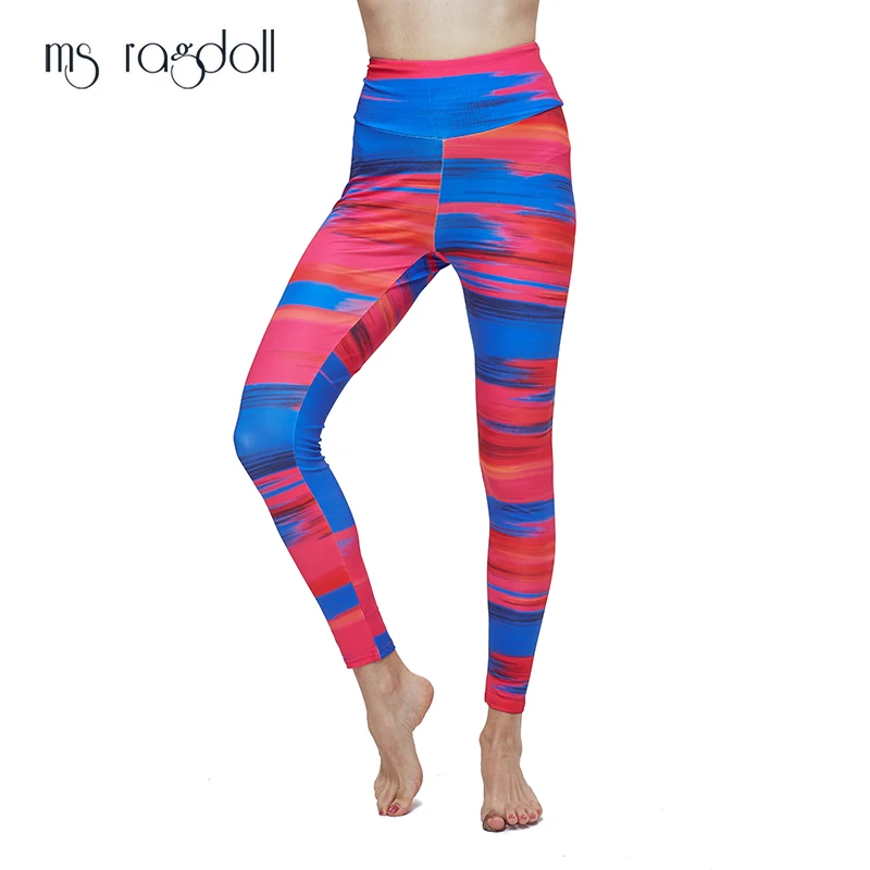 Buy Online Yoga Women Leggings For Fitness Pants Striped Print High Waist Sport Sexy Hip Slim Push Up High Elasticity Workout Trousers For ...