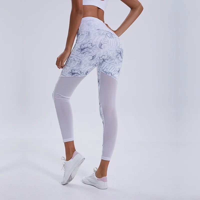 New Printed Stretchy Gym Tights Mesh Leggings For Fitness Tummy Control Yoga Pants High Waist Sport Leggings Running Pants Women