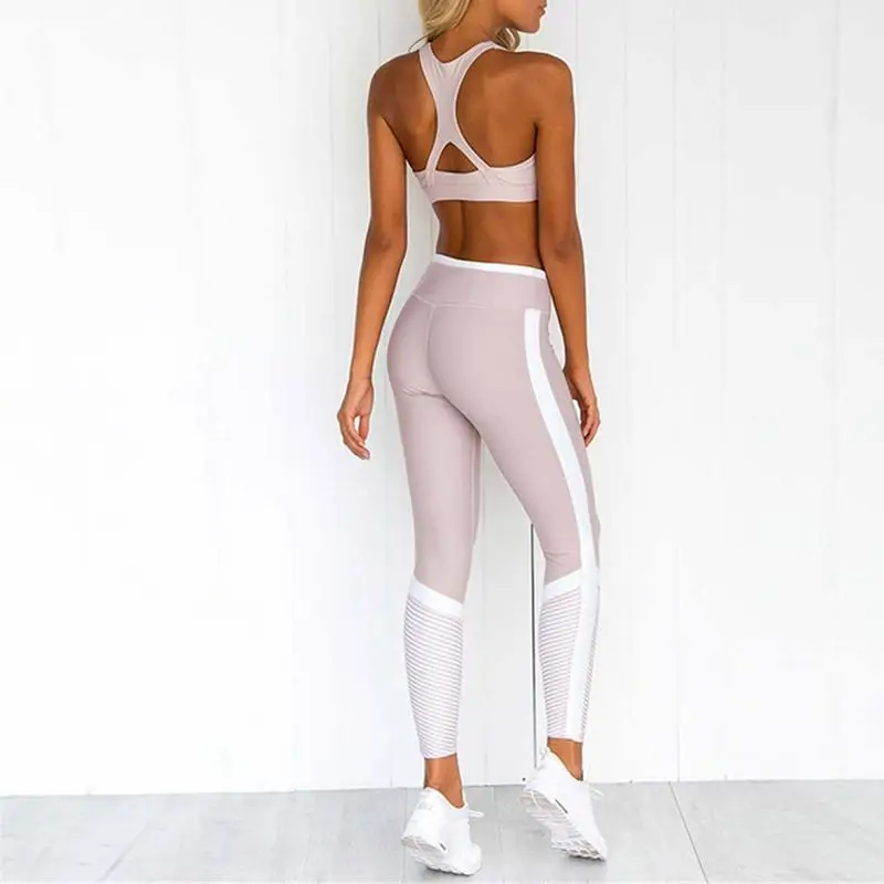 Sexy Leggings Women Striped Patchwork Yoga Fitness Pants Elastic Workout Breathable Sport Pants