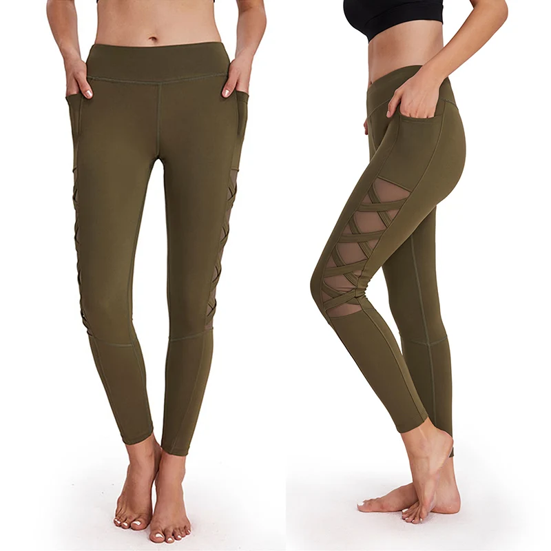 Cheap Womens Mesh Yoga Pants With Side Pockets Workout Running Leggings for Gym Fitness Exercise Training Cross Sport Leggings XL For Sale at AliExpress