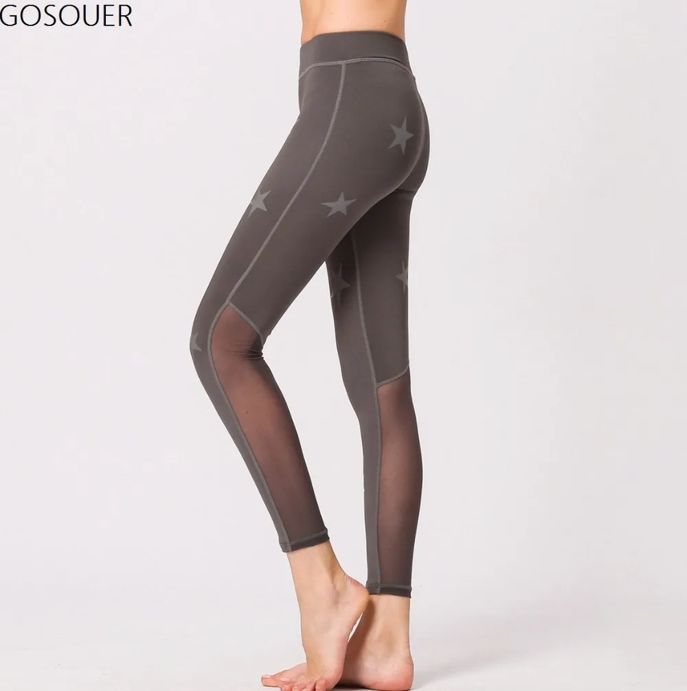 Cheap High Elastic Net Yarn Yoga Pants Star Printed Yoga leggings Fitness Yoga Running Tights Slim Sport Pants Women Gym Trousers For Sale at AliExpress