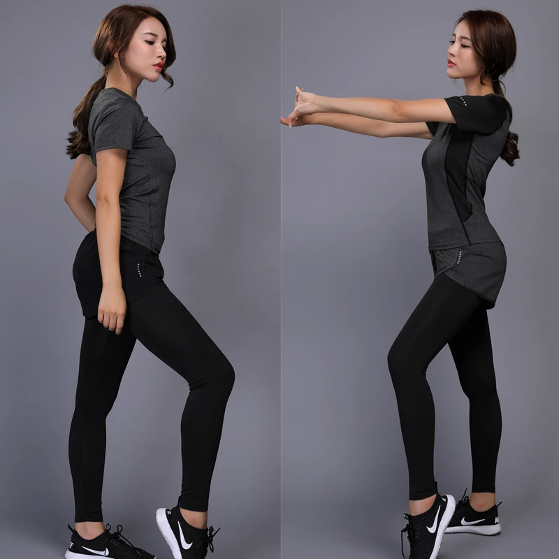 Buy Online Sexy Yoga Set Women Fitness Running Shirt+ 2 In 1 Pants Breathable Gym Workout Clothes Compressed Yoga Leggings Sport Suit For Sale at AliExpress