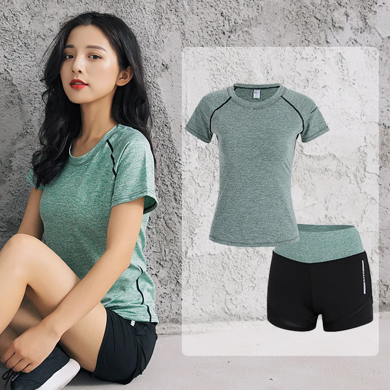 Buy Online Women 2 Pieces Yoga Set Training cloth Shirt+shorts Fitness Suit Female Gym Workout Clothing Breathable Yoga Leggings Sport Suit For Sale at AliExpress