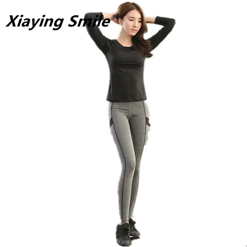 Xiaying Smile Women Yoga Set Gym Fitness Clothes Tennis Shirt+Pants Running Tights Jogging Workout Yoga Leggings Sport Suit plu