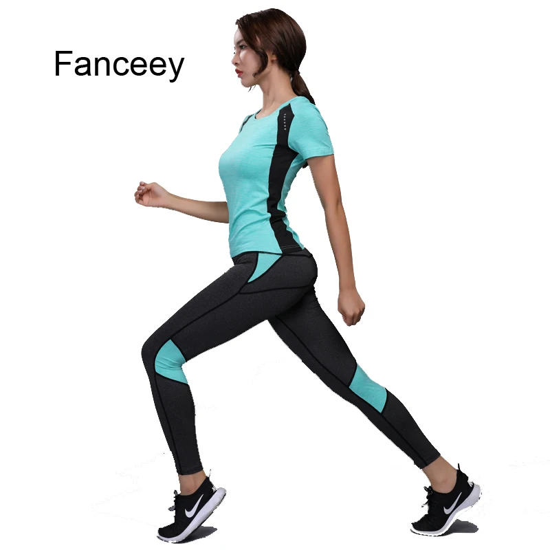 Good Fanceey Women Yoga Set Gym Fitness Clothes Tennis Shirt+Pants Running Tights Jogging Workout Yoga Leggings Sport Suit For Sale at AliExpress