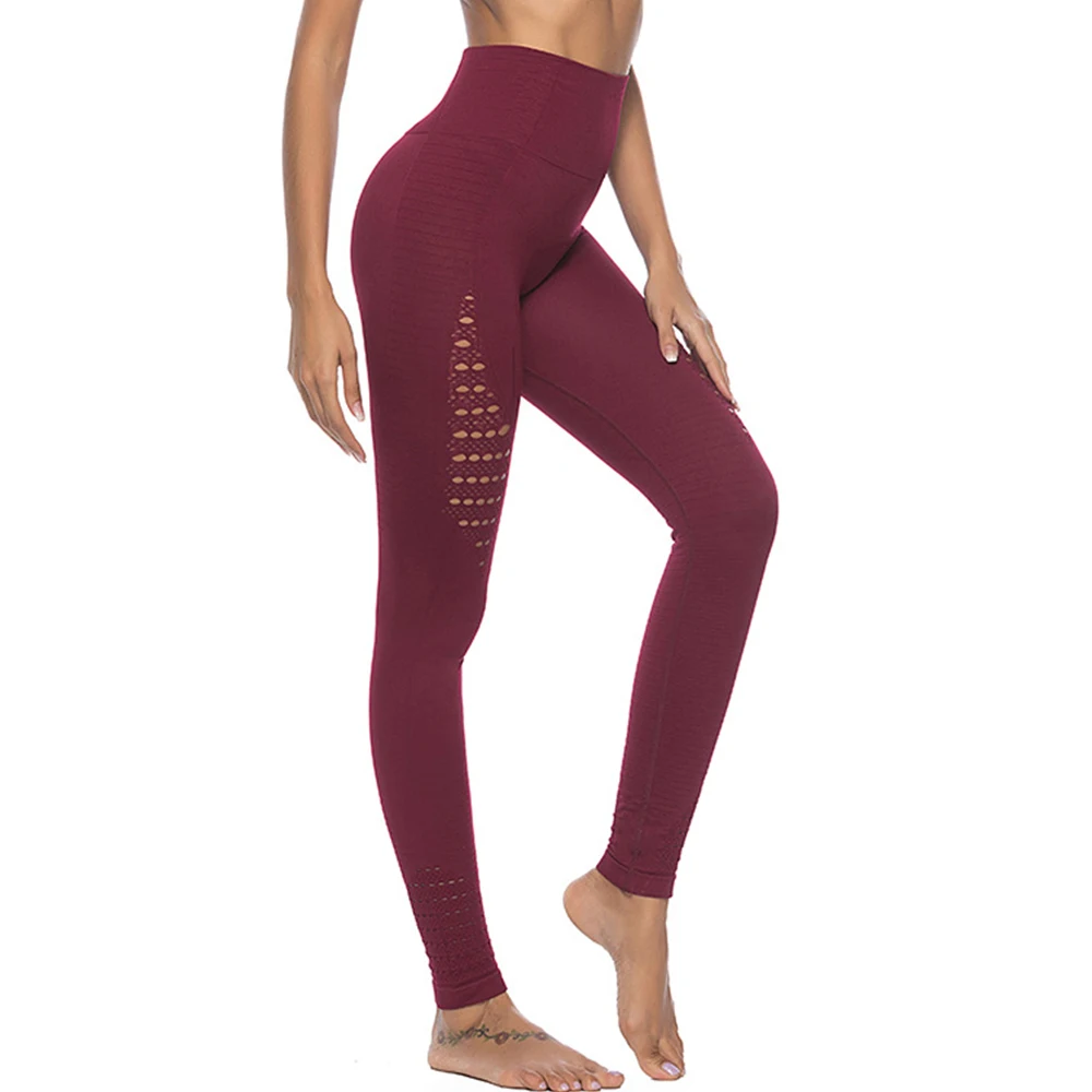 Best Price High Waist Yoga Pants Women solid Leggings Gym Wear Fitness Yoga Leggings Workout Clothing Hollow Out sport Running Pants For Sale at AliExpress