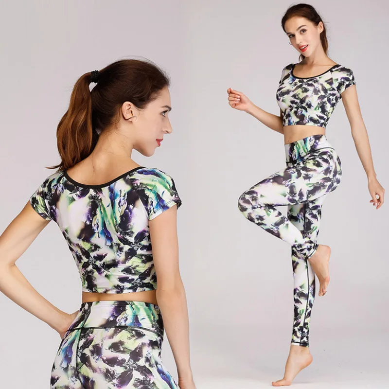 Buy Online Women Yoga Set Printed Leopard Gym Fitness Tracksuit Clothes Shirt+Pants Running Tight Jogging Workout Yoga Leggings Sport Suit For Sale at AliExpress