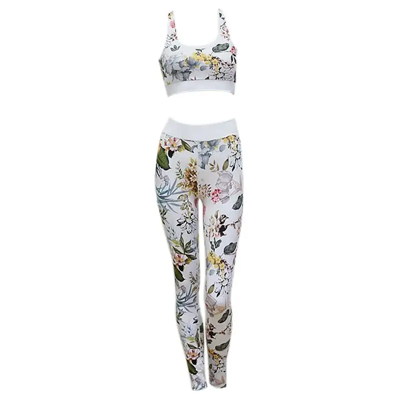 Women's Yoga Sets Fitness Mesh Flora Print Leggings Sport Set Breathable Gym Running Workout Suit Set For Jogging Drop shipping