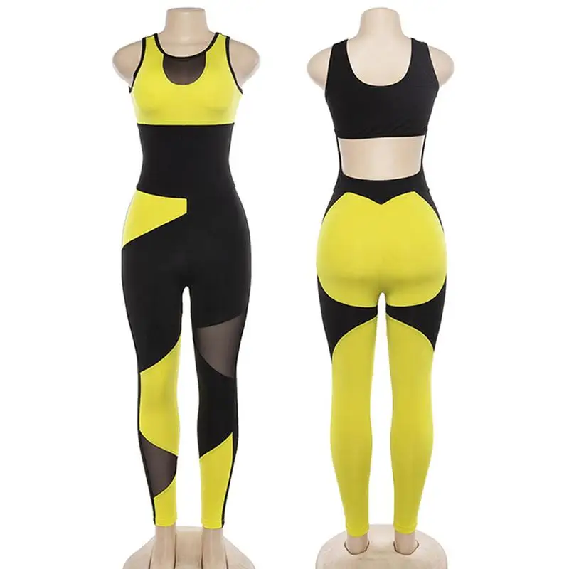Good One Piece Patchwork Women's Sports Overalls Yoga Set Sexy Mesh Open Back Jumpsuit Leggings Sport Gym Fitness Overalls For Sale at AliExpress
