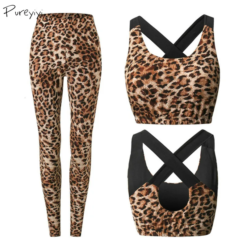 Yoga Set Leopard Printed Fitness Women Back Cross Gym Running Jogging Workout Sportswear Female Yoga Leggings Sport Suits Sexy