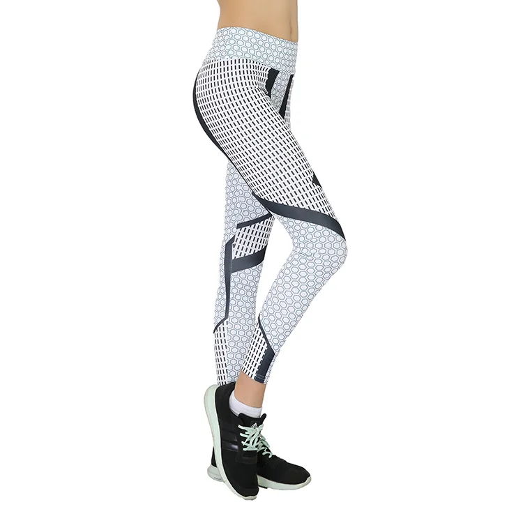 Buy Online Women Vogue Sexy Leggings Digital Printing Honeycomb Black and White Point Elastic High Waist Leggings Sport Workout Leggings For Sale at AliExpress