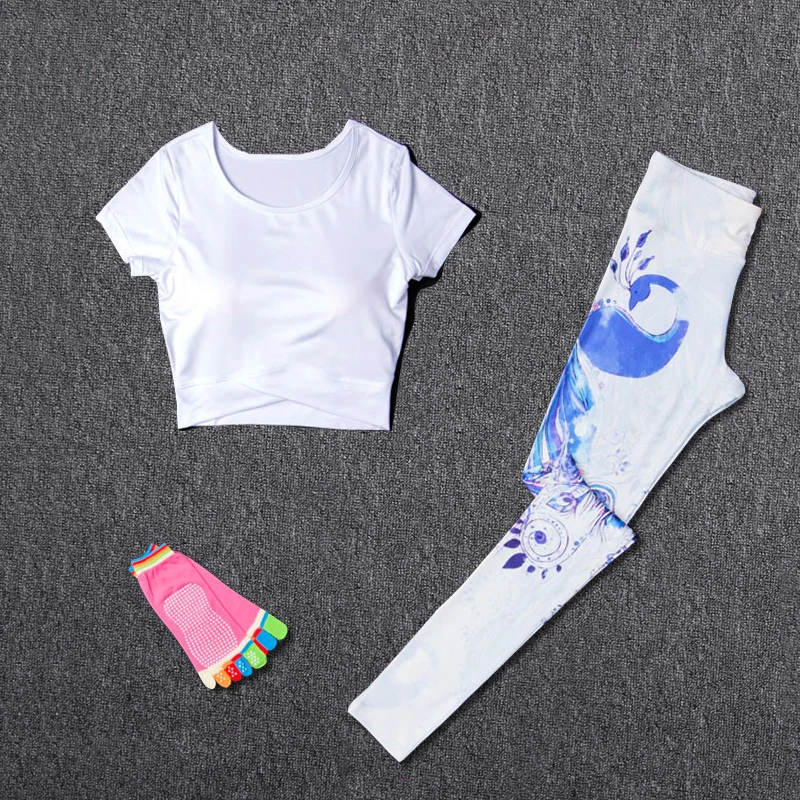 Women Sport Suit Yoga Fitness Sets Sport Wear Running Leggings Sport T-shirt+Yoga socks+ Workout Gym Pants 3Pcs/set Sportswear
