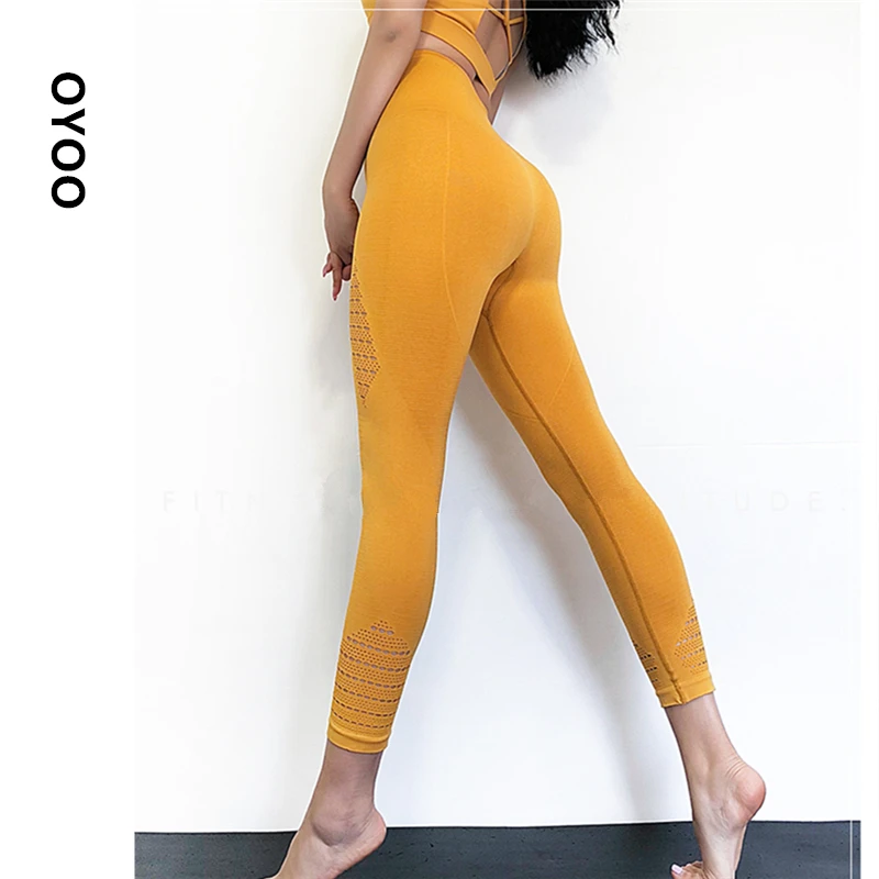 Best Seller oyoo women's seamless sports capris high elastic slim yoga leggings high waist workout running tights 3/4 length sport pants For Sale at AliExpress