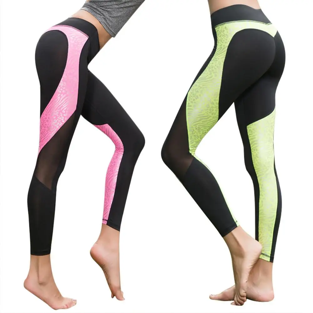 2018 New Women Tight High Elastic Fitness Sport Pants Sexy Hips Push Up Leggings Stitching Stretch Yoga Pants For Womens