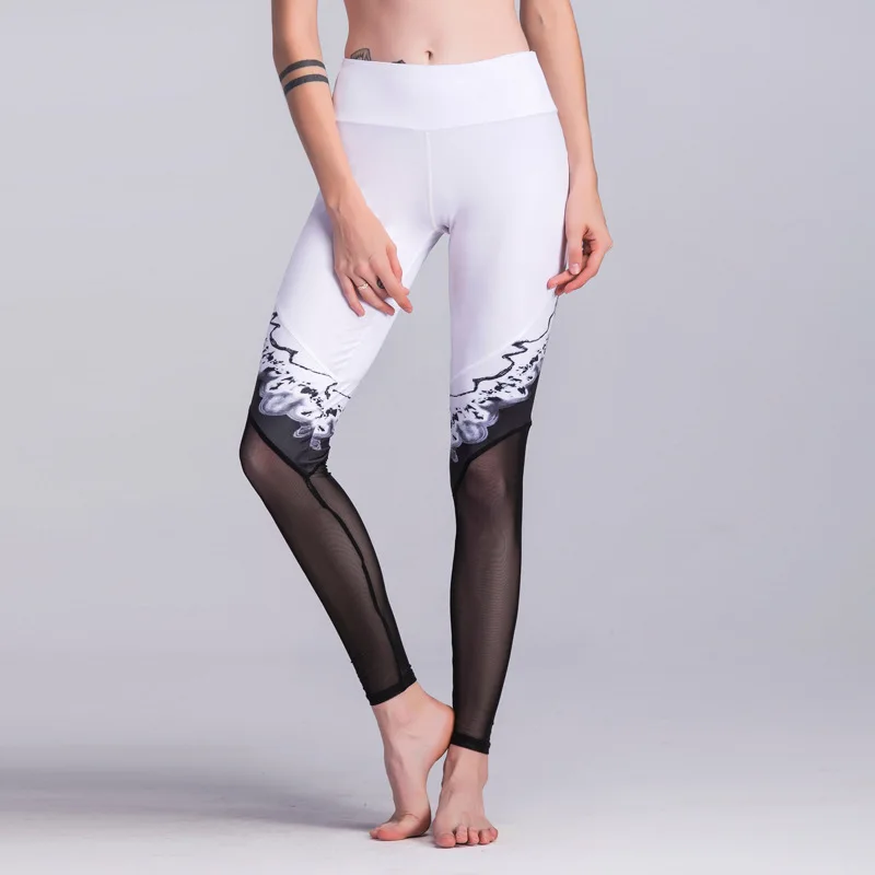 Cheap Black/White High Waist Women Yoga Pants Mesh Fitness Runn Leggings Print Patchwork Sport Capris Dance Tights Gym Slim Trouser For Sale at AliExpress