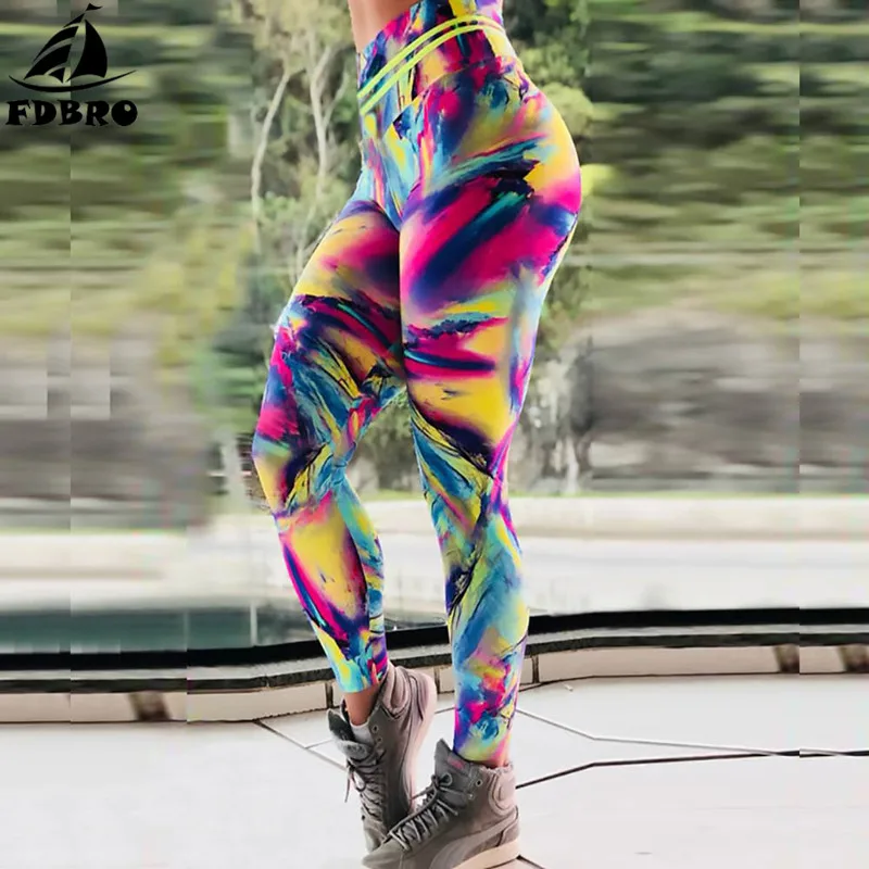 Best Seller FDBRO High Waist Sport Running Pants Women Stretchy Gym Tights Energy Rainbow Print Seamless Leggings Tummy Control Yoga Pants For Sale at AliExpress