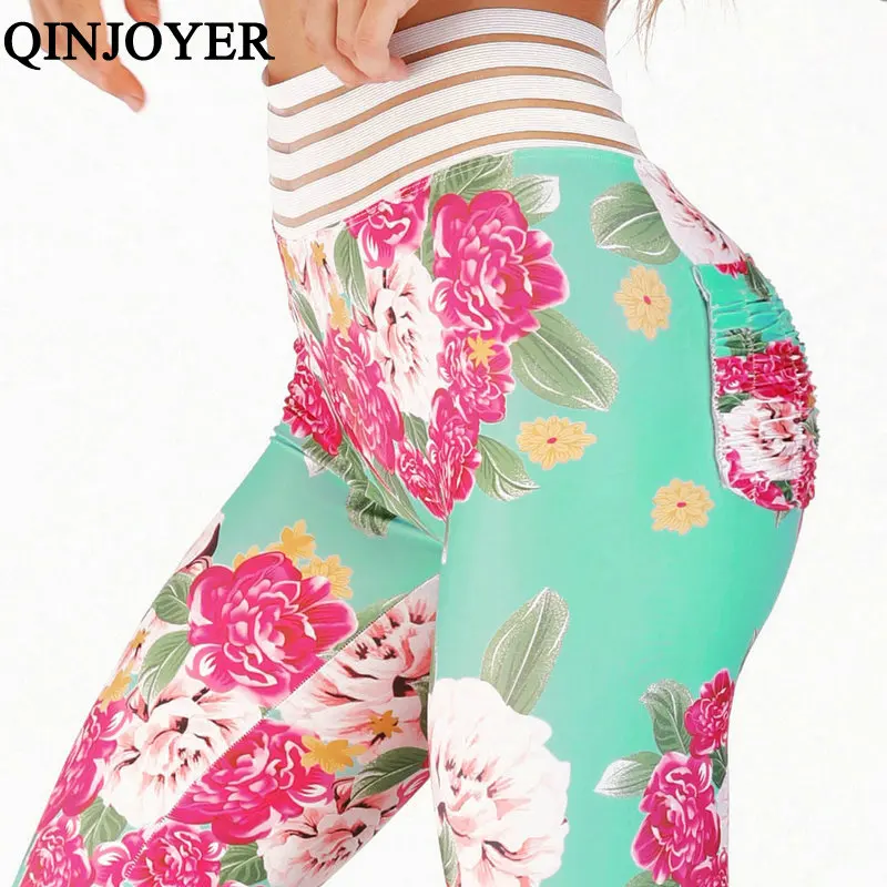 QINJOYER Sport Leggings High Waist Compression Pants Gym Clothes Sexy Running Floral Print Yoga Tights Women Fitness Yoga Pants