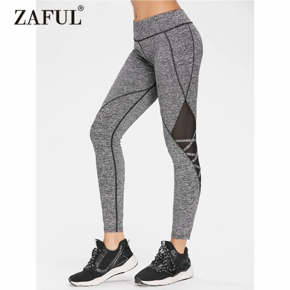 Online Order ZAFUL Yoga Pants Marled Mesh Panel Leggings Fitness Sport Leggings Tight Slim Running Sports Pants Quick Drying Training Trouser For Sale at AliExpress