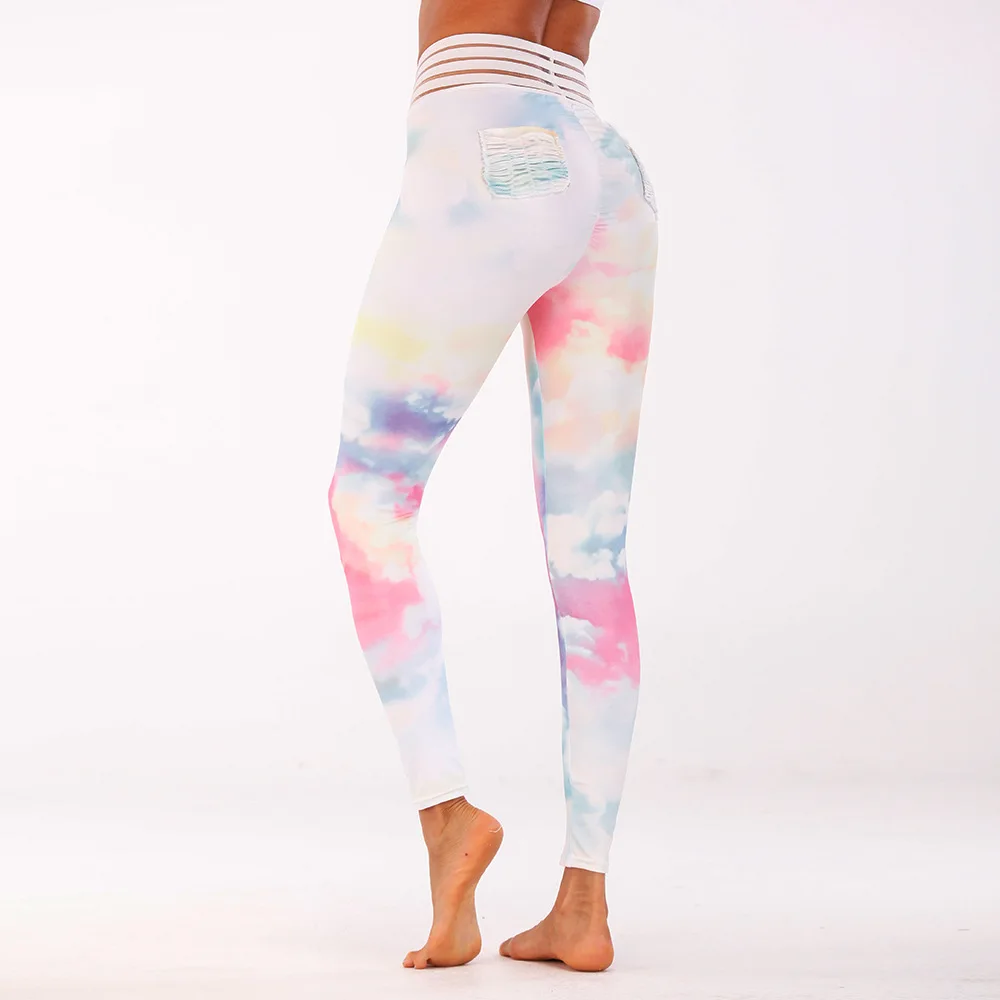Best Seller GXQIL 2018 High Waist Yoga Pants Fitness Gym Leggings Sport Pants Printed Pleated Pockets Mesh Gym Leggins Push Up Tights S XL M For Sale at AliExpress