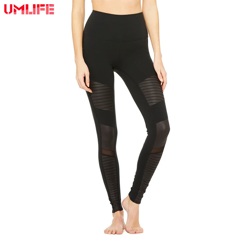 Cheap UMLIFE Yoga Leggings Sport Women Fitness Running Tights Locomotive Style Pants Mesh Splice Pleated Woman Yoga Leggings White For Sale at AliExpress