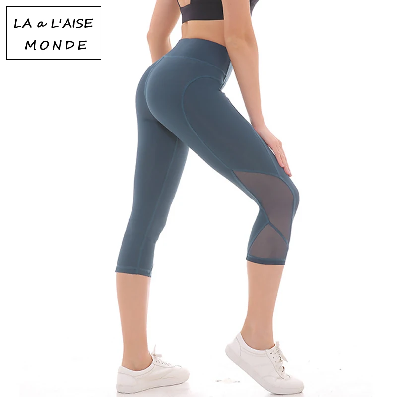 Buy Online Sport Leggings Women Fitness Calf-Length Yoga Leggings Capri Pant Gym High Waist Legging Girl Black Mesh 3/4 Yoga Pants Woman For Sale at AliExpress