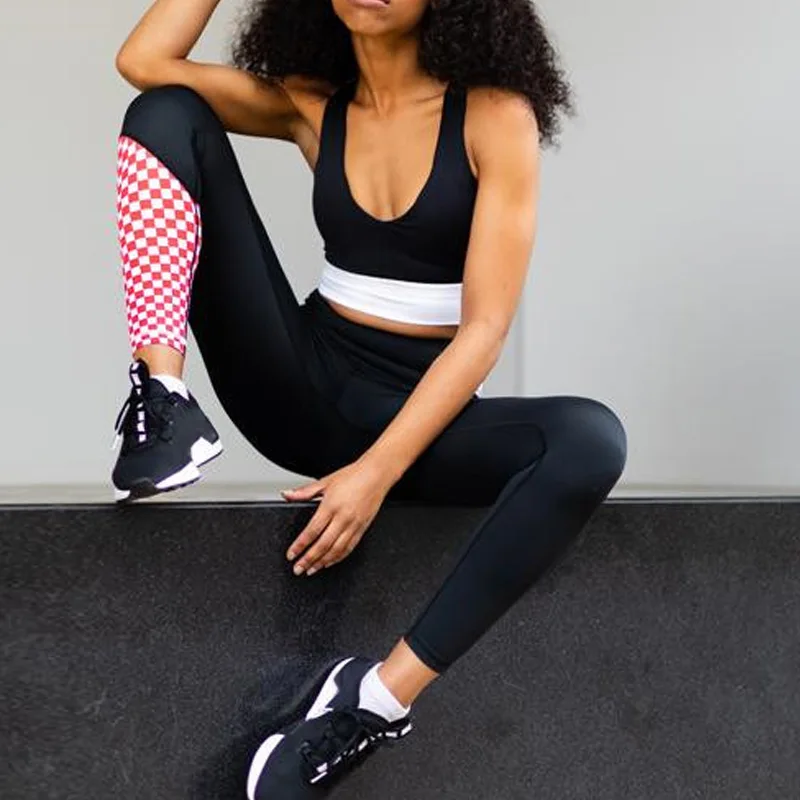 Women New Arrival 2018 Wholesale Gym Black Plaid Tartan Patchwork Sexy Elasticity High Waist Slim Skinny Leggings Sport Fitness