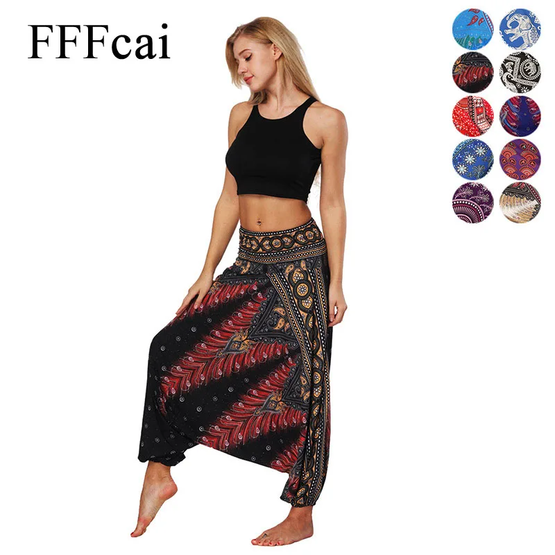 Buy Online FFFcai 2018 Women's Indonesian National Costume Style Flower Print Belly Dance Loose Broad Leg Lantern Pants Yoga Leggings Sport For Sale at AliExpress