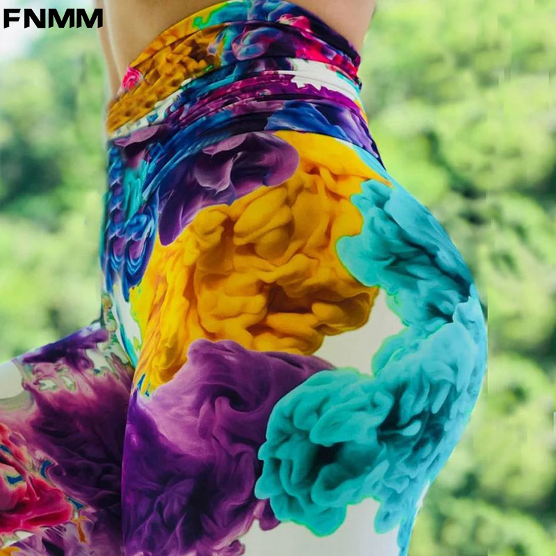 Women colorful pants High Elastic Fitness Sport Leggings Yoga Pants spliced printed Slim Running Sportswear Trousers Clothing