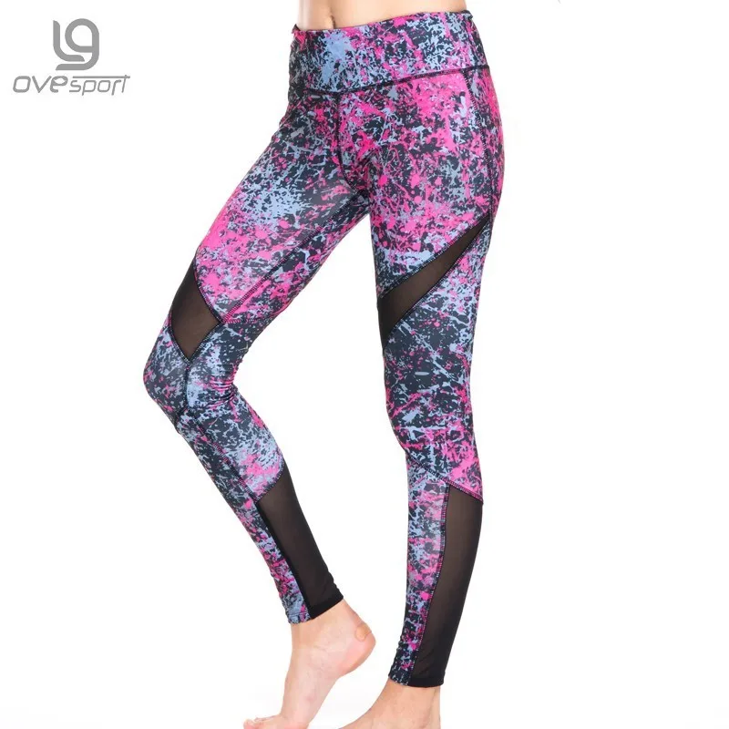 OVESPORT Mesh Patchwork Women Fitness Leggings High Waist Yoga Pants Trousers Women Sports Tight Elastic Leggings Sport 2017 New