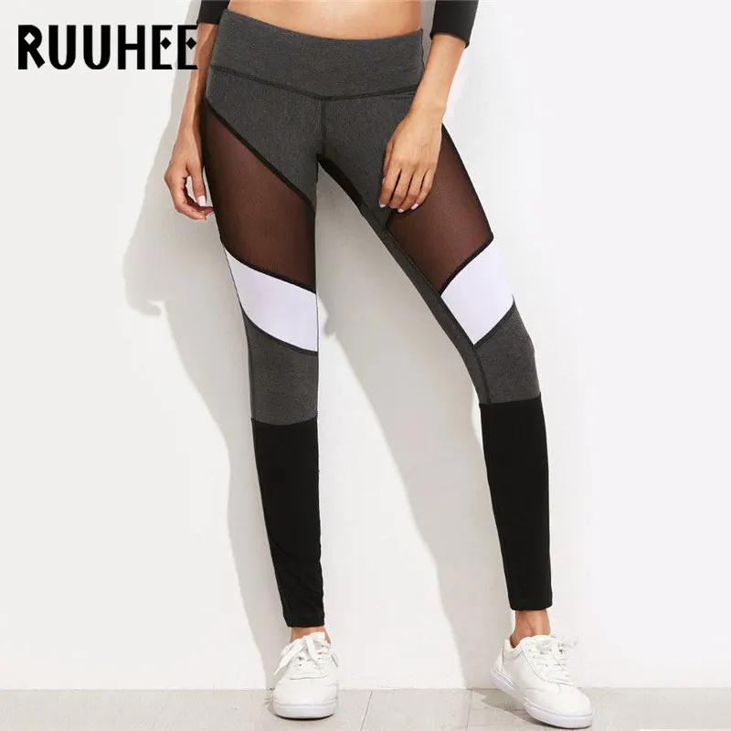 Cheap RUUHEE Sport Leggings High Waist Yoga Pants Women Workout Gym Bodybuilding Pants Stretchy Mesh Insert Yoga Leggings For Sale at AliExpress