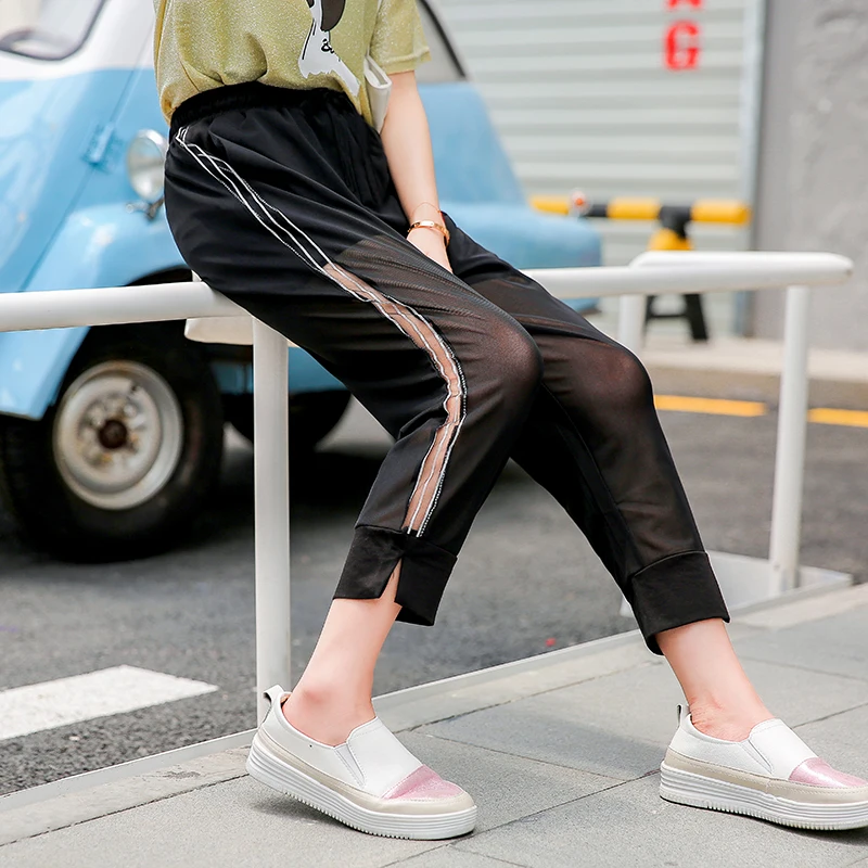 Buy Online Summer Women Yoga Pants Black Loose Fitness Sport Leggings Slim Thin Wide Leg Haren Pants Mesh Chiffon Bloomers Running Trousers For Sale at AliExpress