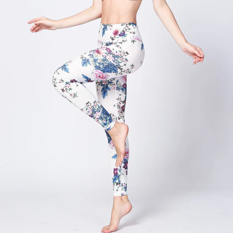 Buy Online 2018 New Yoga Pants Women High Waist Skinny Running Sport Leggings Breathable Stretched Cropped Gym Floral White Fitness Tights For Sale at AliExpress