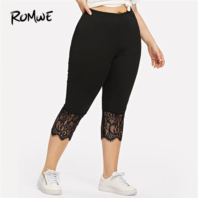 Good Romwe Sport Black Elastic Waist Plus Size Fitness Women Calf-Length Lace Yoga Pants Leggings 2018 Stretchy Skinny Sports Tights For Sale at AliExpress