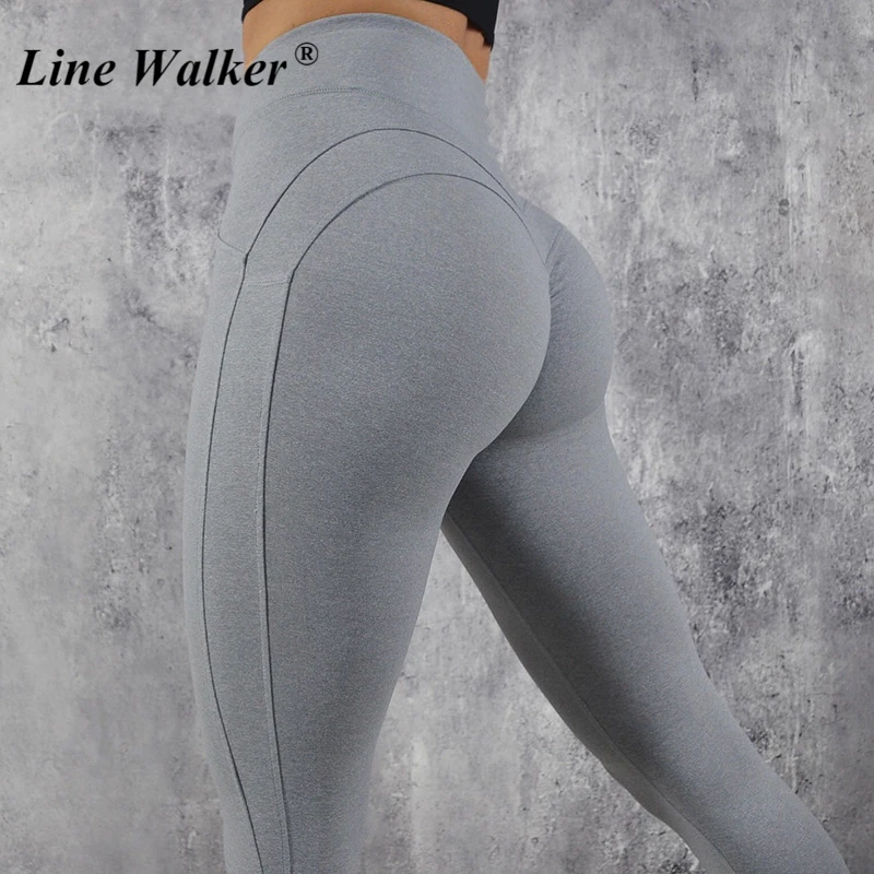 Best Price Line Walker Solid Stretch Vintage Yoga Pants Women Scrunch Butt Sport Leggings For Fitness High Waist Tummy Control Gym Tights For Sale at AliExpress