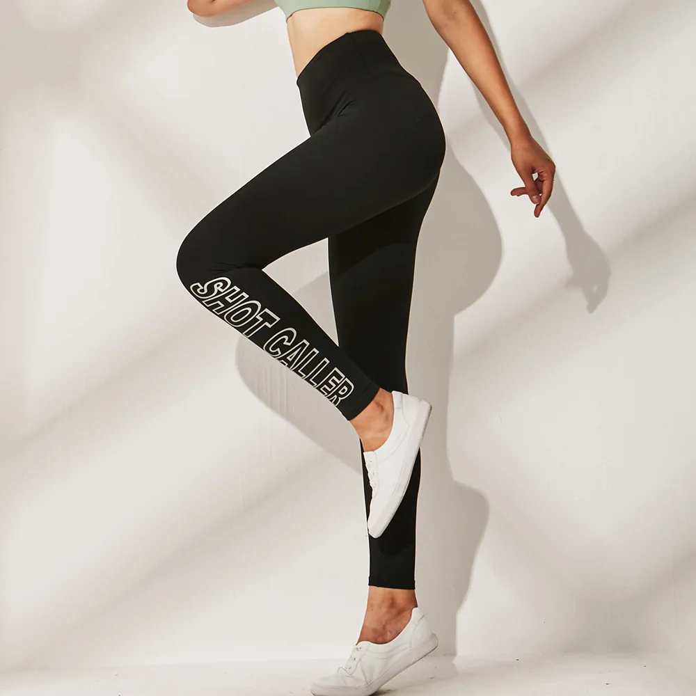 New Letters Printing Running Pants Female Stretch Tight Belly Fitness Pants Quick-drying Hips-Up Slacks Leggings Sport Fitness
