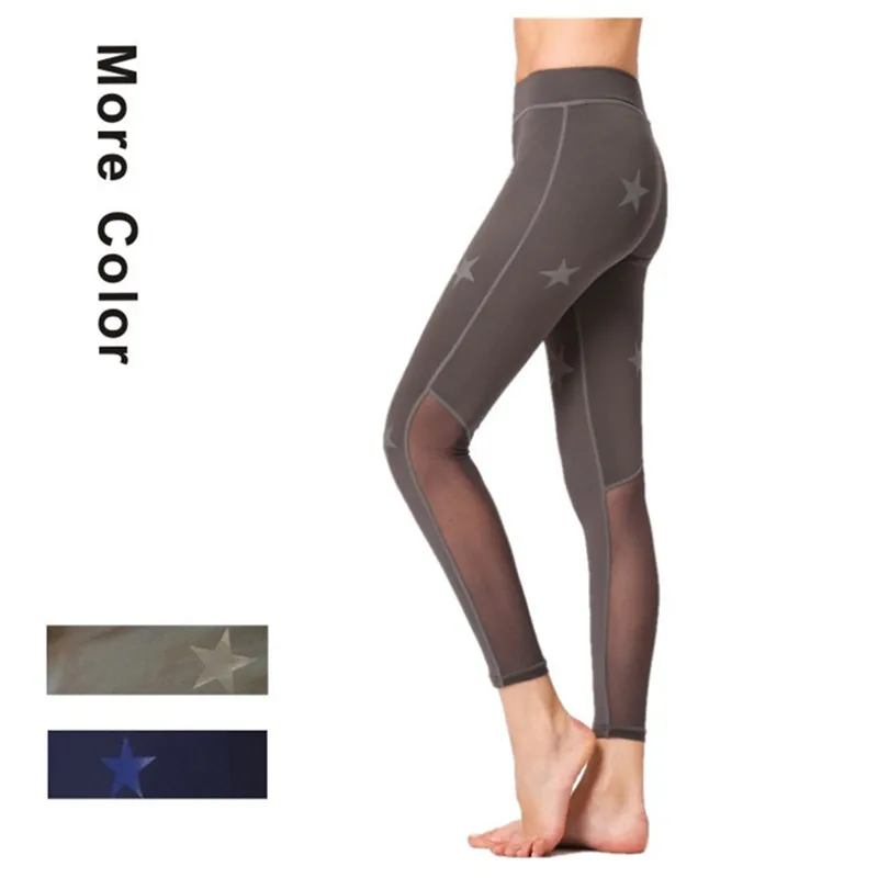 2018 New Arrival Star Printed Women Yoga Pants Tight Elastic Mesh Sport Leggings Breathable Gym Leggings Sport Fitness
