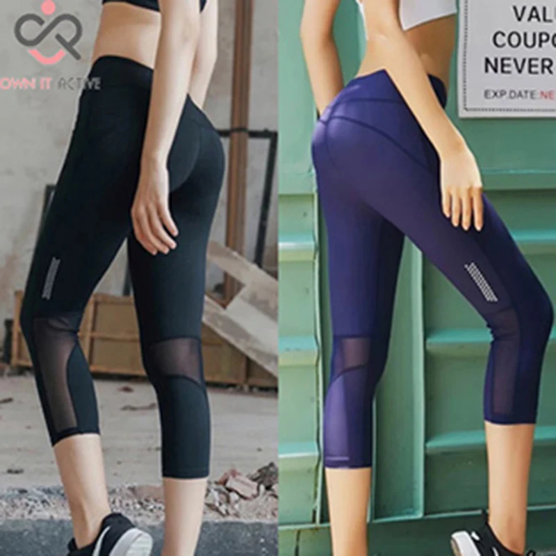 Good 2019 newest Gym Women Sport Fitness Leggings running Yoga High Waist Mesh stitching Calf-length Pants P339 For Sale at AliExpress