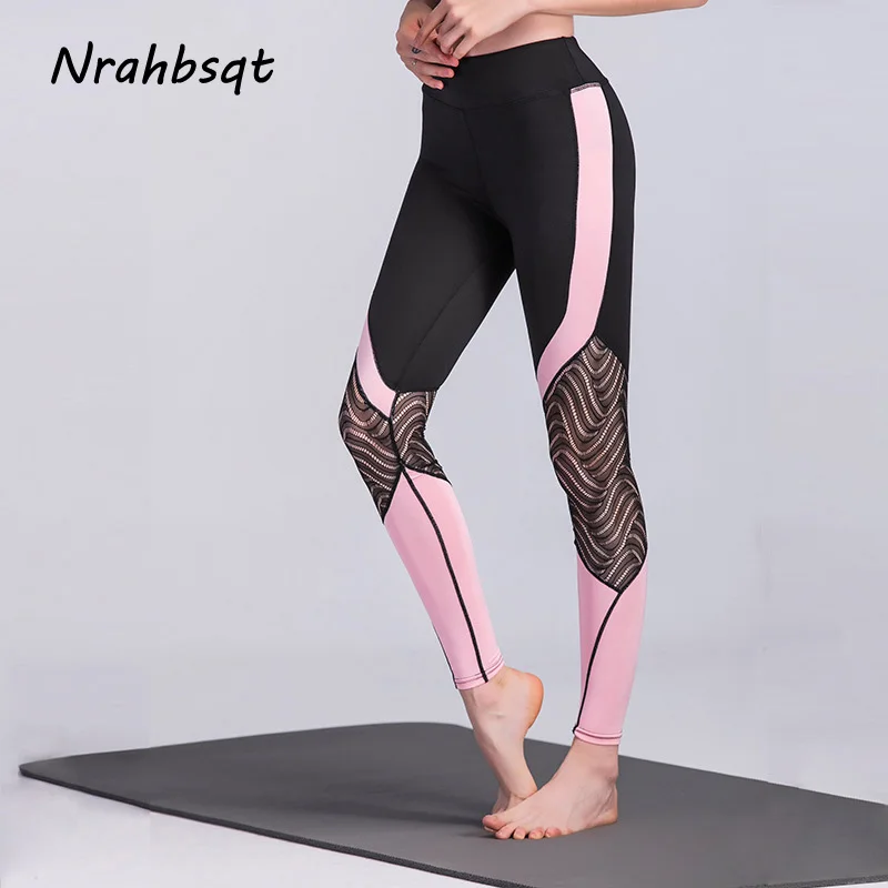 Best Price NRAHBSQT New Black Lace Stitching Pink Women Yoga Pants Leggings Sport Fitness Leggins Sports Active Wear for Women Gym YP063 For Sale at AliExpress