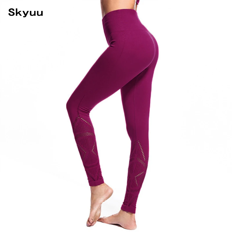 Skyuu Hollow Out Yoga Pants Women High Waist 2018 New Leggins Sport Fitness Gym Seamless Leggings Push Up Running Workout Tights