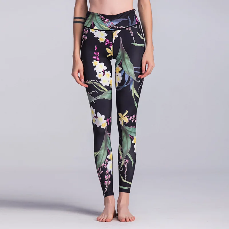 Online Order Women Yoga Pants Black Fitness Sport Leggings Flowers 3D Print Slim Elastic Capris Running Trousers Skinny Gym High Waist Tights For Sale at AliExpress