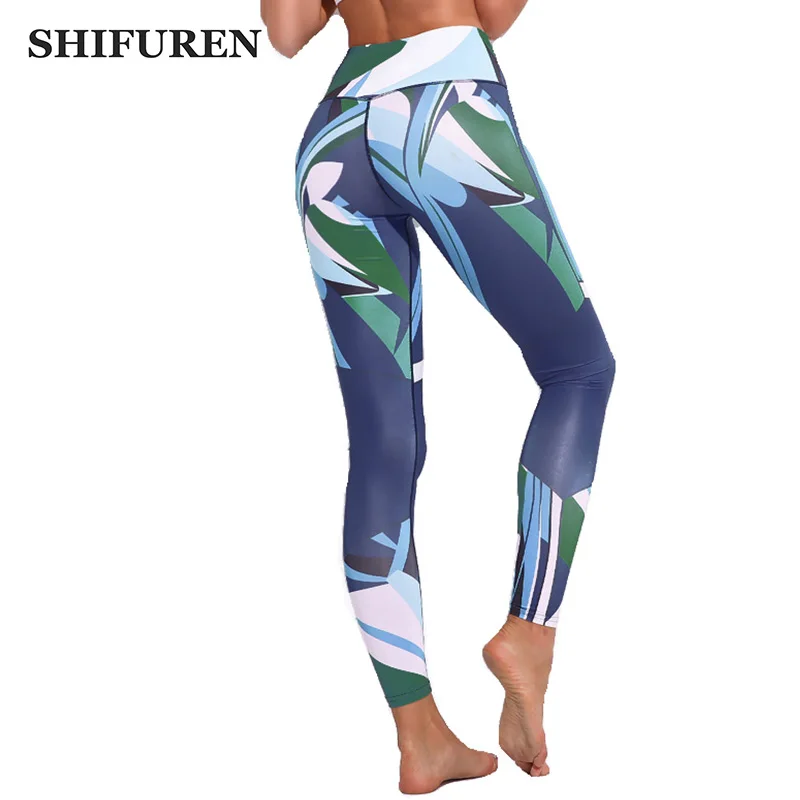 SHIFUREN Women Yoga Leggings Sport Pants High Waist Fitness Workout Training Leggings Elastic Running Compreesion Tighs Trousers