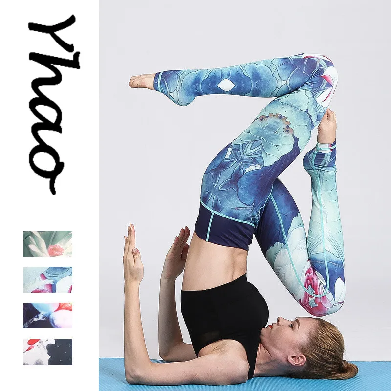 Women Yhao Yoga Pants Printed Dry Fit Sport Pants Elastic Fitness Gym Pants Workout Running Tight Sport Leggings Female Trousers