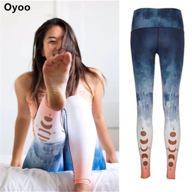 Buy Online Oyoo Women Pink Yoga Pants Ombre Moon Printed Running Fitness Gym Active Sport Leggings Female Wokout Tights Clothing Sportswear For Sale at AliExpress