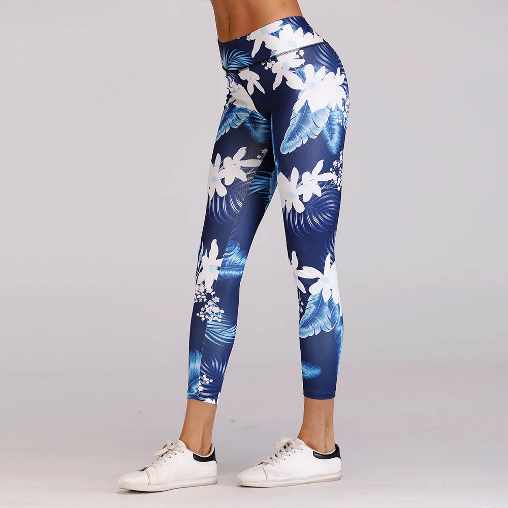 Print Women Sport Leggings Yoga Pants Black High Waist Elastic Running Fitness Slim Sport Pants Gym Leggings Women Trousers
